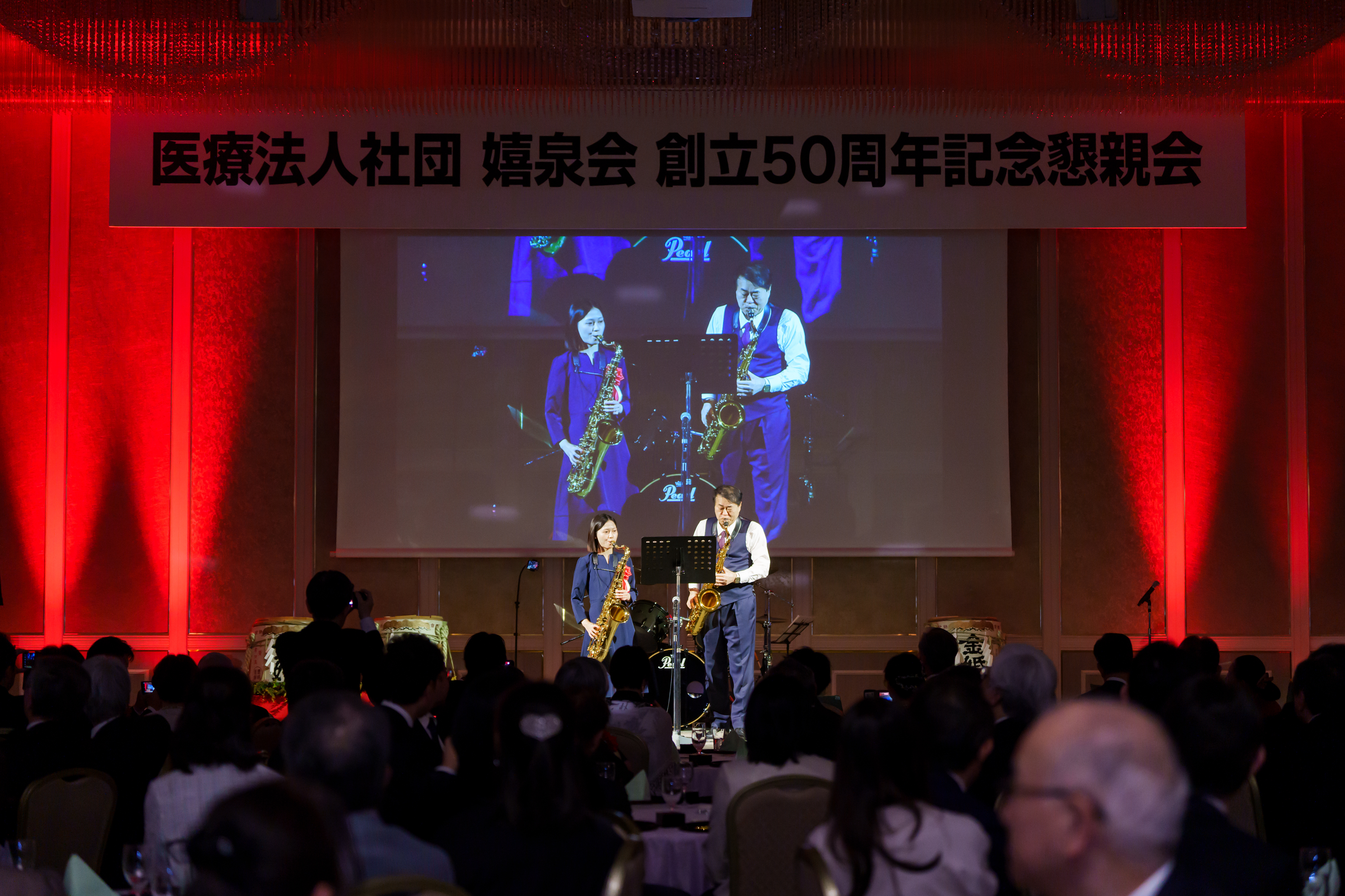 令和8年3月1日に明治記念館にて「医療法人社団 嬉泉会 創立50周年記念懇親会」を行い、感謝の気持ちをお伝えしました。今までお世話になりました方々をお招きし、歌あり音楽ありダンスあり劇ありと皆さまに楽しんで頂ける嬉泉会らしい懇親会になりました。